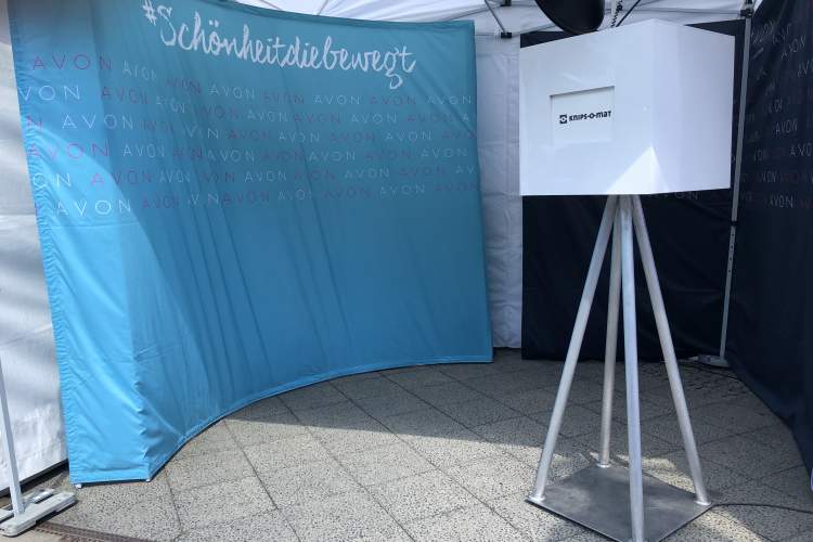 Während eine der beiden Fotoboxen Premium in der Nähe der Warm-Up Area platziert wurde, stand die zweite Fotobox Premium im Ziel für die Läuferinnen bereit. Beide Fotoboxen wurden die Veranstaltung über von einem Knips-O-Mat Betreuer technisch betreut. Für beide Fotoboxen wurde ein unterschiedlicher Hintergrund aufgebaut – so konnten sich die Läuferinnen vor einem großen AVON-Kussmund und vor dem Hashtag #schönheitdiebewegt mit Papp-Requisiten, wie einem überdimensional großen Lippenstift, einem Pokal und einer Medaille mit der Aufschrift “Heldin” verwirklichen.