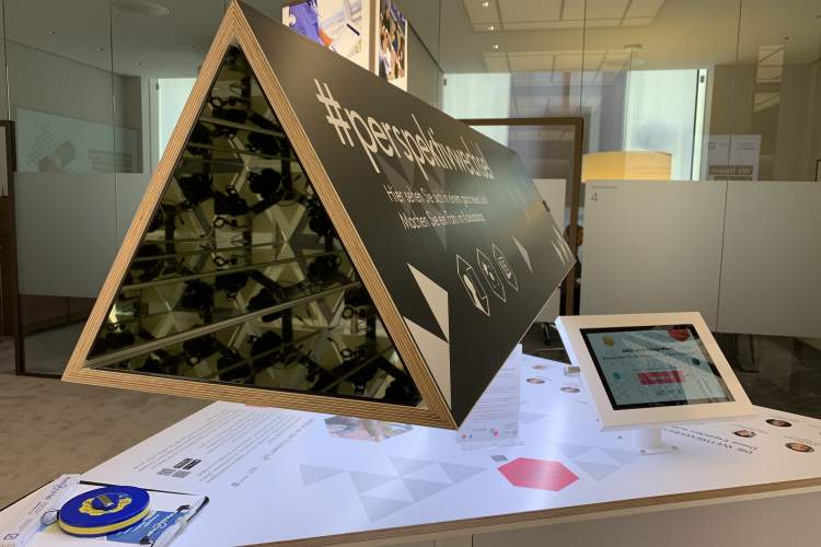 Das Ziel der Ausstellung war zum einen die Präsentation der Projekte, zum anderen die Erstellung eines interaktiven Gesamtkonzepts für Besucher. Eine Fotoaktion mit anschließendem Social Media Sharing des geschossenen Fotos sollte das Herzstück des Konstrukts werden. Um die geltenden Datenschutzbestimmungen einzuhalten, wurde zusätzlich ein Umfragetool integriert, damit die Gäste ihre Zustimmung oder Ablehnung zur Veröffentlichung ihres Fotos unter dem Hashtag #perspektivwechsel mitteilen können.
