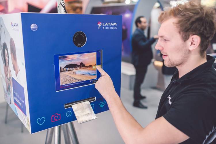Die gebrandete Fotobox und der Greenscreen wurden während der gesamten Laufzeit von einem Knips-O-Mat Betreuer begleitet, wodurch zu jeder Zeit ein reibungsloser Ablauf gewährleistet und auf Besucherwünsche gleich wie Kundenwünsche eingegangen werden konnte. An der Fotobox Premium konnte jeder Besucher aus brasilianischen Hintergründen, wie zum Beispiel die Copacabana oder dem Zuckerhut, auswählen. Es gab jedoch an der Fotobox auch die Möglichkeit, sich an Bord eines LATAM Flugzeuges perfekt in Szene zu setzen.