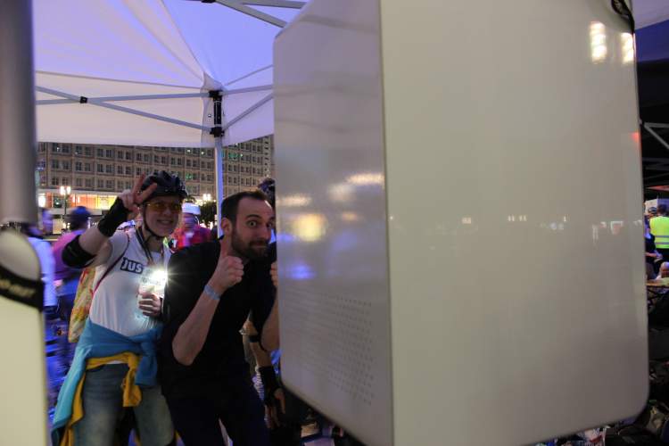 Da der Saisonauftakt auf Grund von starken Unwettern zunächst auf der Kippe stand, benötigten wir eine mobile und schnelle auf,- und abbaubare Variante. Wir entschieden uns daher für 3 unserer Fotoboxen Basic statt für die 3 bereits etablierten Fotoboxen Premium der vorherigen Skate by Night Veranstaltungen. Die Fotobox Basic eignete sich unter den bereits genannten Wetterbedingungen durch ihre vergleichsweise einfache Handhabung und kompakte Bauweise perfekt für dieses Event. Die 3 Fotoboxen Basic wurden parallel nebeneinander und durch einen Pavillon geschützt aufgebaut. Um den hohen Andrang an den Fotoboxen gerecht zu werden und jedem Skater in möglichst kürzester Zeit ein Foto zu ermöglichen, war zu jeder Zeit ein Betreuer von uns vor Ort.