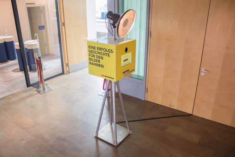 Die Produktion und Montage des Brandings übernehmen wir. Ähnlich wie bei der Fotobox Basic ist es beim Fotoautomaten möglich, das Branding nach der Veranstaltung bei uns einzulagern und für das nächste Event wiederzuverwenden, ohne das dafür Kosten für eine erneute Produktion anfallen.